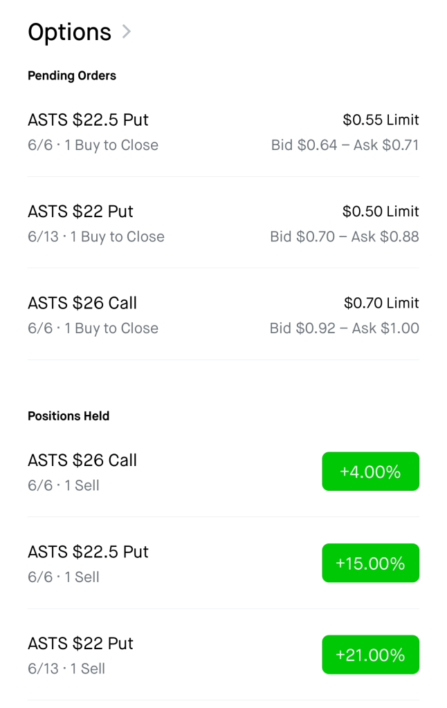 I got right back to it and starting selling Cash Secured Puts on AST Space Mobile (ASTS). I sold 7 in total bringing in most of this month’s profits.