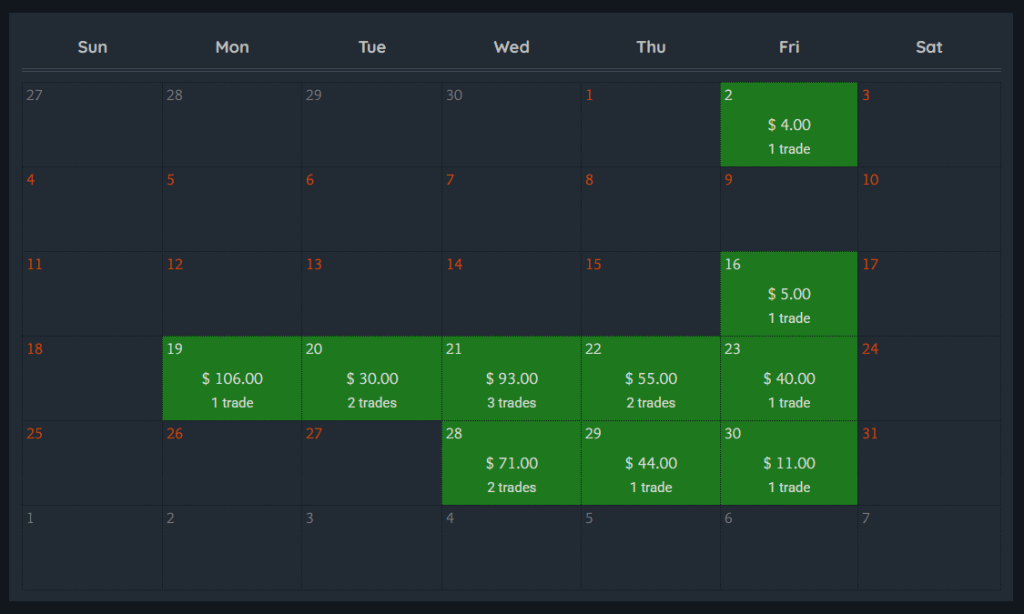 My monthly goal is to increase my accounts by 10%. In May I achieved an increase of 3.64% bringing in $459 total with 15 trades and no losses.