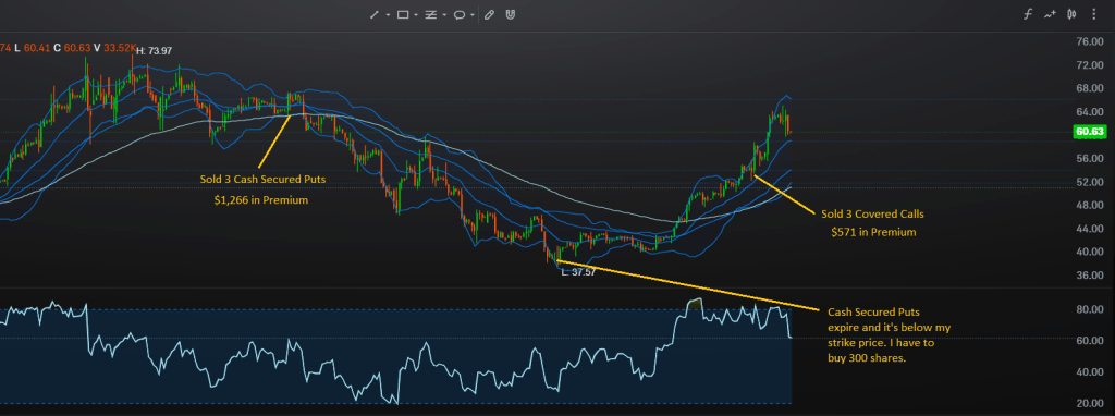 Now, you have to be able to stomach the downturn and have the patience to let the price rise back up before selling Covered Calls on the shares you now own. When you’re assigned on a Cash Secured Put, this ultimately means that something has happened and the stock price has dropped. More often than not, this means you have to buy shares for a price higher than they’re currently trading. This won’t feel great.